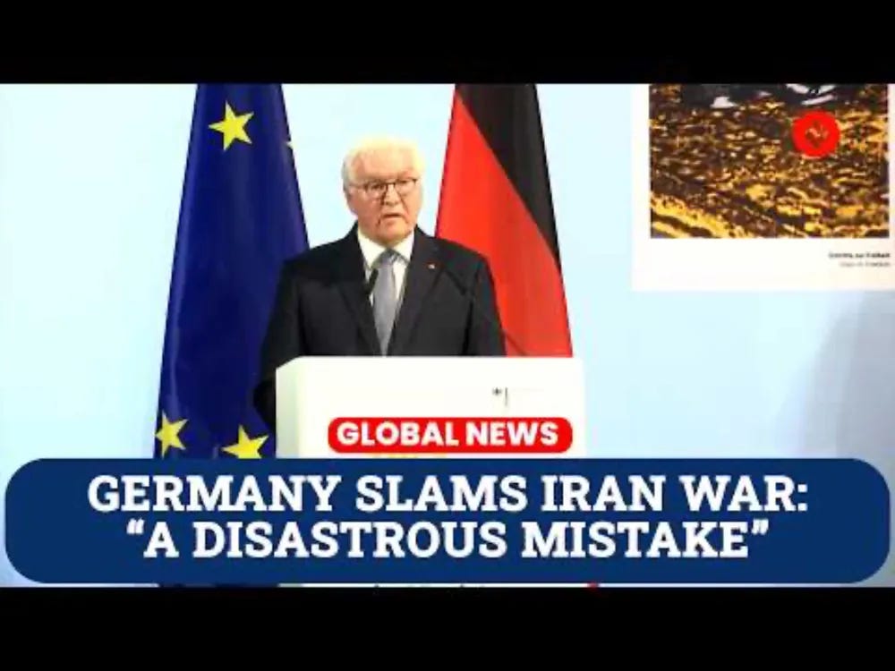 Scott: German President Frank-Walter Steinmeier states that Trump’s war on Iran was launched and is being maintained in clear-cut violation of international law and is a “disastrous mistake.” Germany and other European powers cannot ignore this fact.